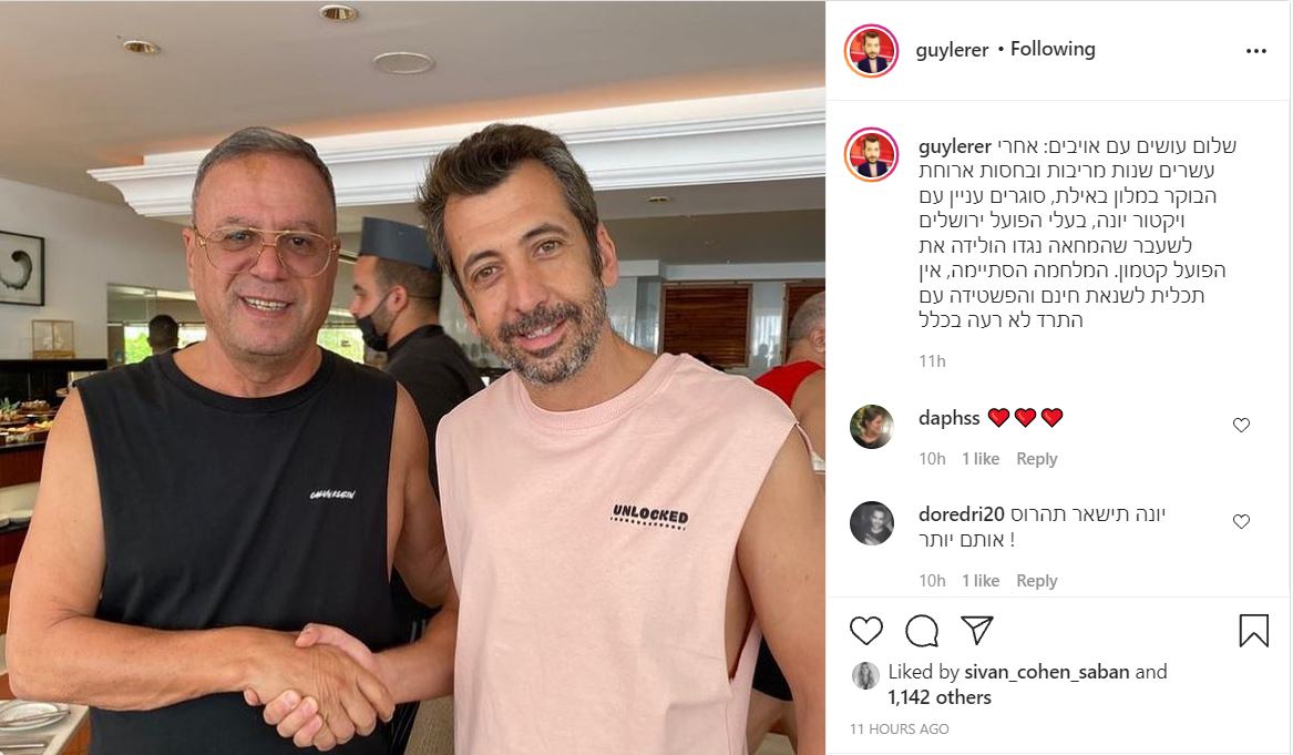 לרר העלה תמונה לאינסטגרם שלו ובה כתב: "שלום עושים עם אויבים: אחרי עשרים שנות מריבות ובחסות ארוחת הבוקר במלון באילת, סוגרים עניין עם ויקטור יונה, בעלי הפועל ירושלים לשעבר שהמחאה נגדו הולידה את הפועל קטמון. המלחמה הסתיימה, אין תכלית לשנאת חינם והפשטידה עם התרד לא רעה בכלל".