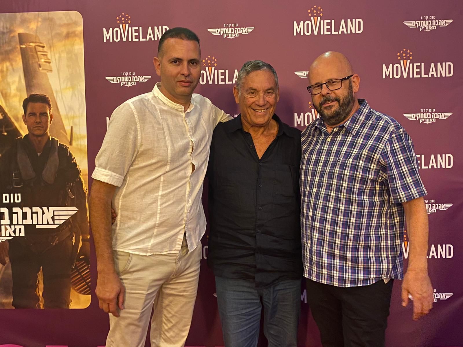 בכירי חיל האוויר לדורותיהם הגיעו להקרנה חגיגית במובילנד של הסרט החדש: "אהבה בשחקים - מאווריק״, בכיכובו של טום קרוז. נצפו באירוע החגיגי: הרמטכ"ל לשעבר רא"ל דן חלוץ, תא"ל במיל׳ צבי קנור ותא"ל במיל' יואל פלדשו