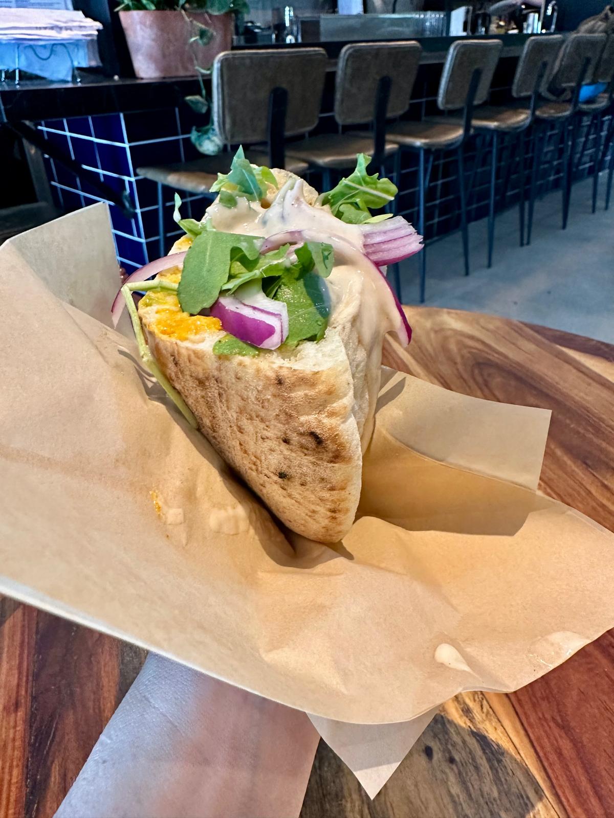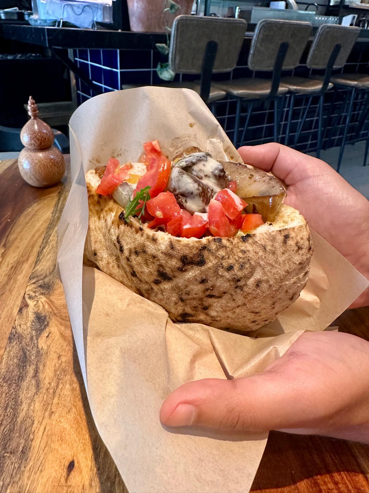 פיתה עם כבד ובצל בפופ-אפ של חמודי אבולעפיה (צילום: רעי שני)