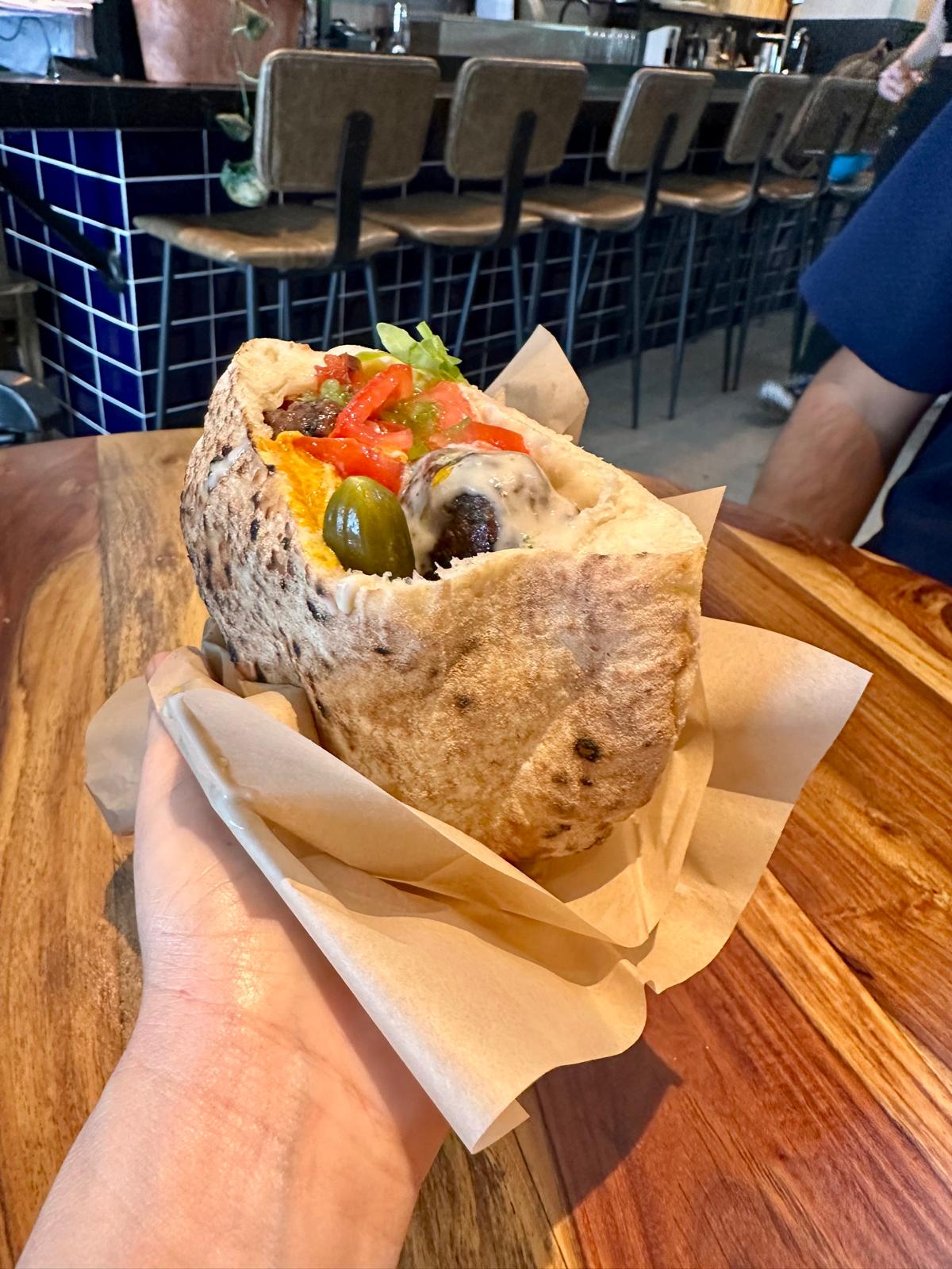 פיתה שקדי עגל עם מלאאאא טחינה (צילום: רעי שני)