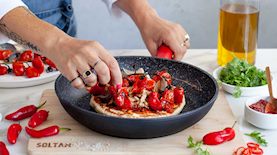 - מניחים מעל שוב טורטייה ושוב בשר ומעט עגבניות וחוזרים על הפעולה.