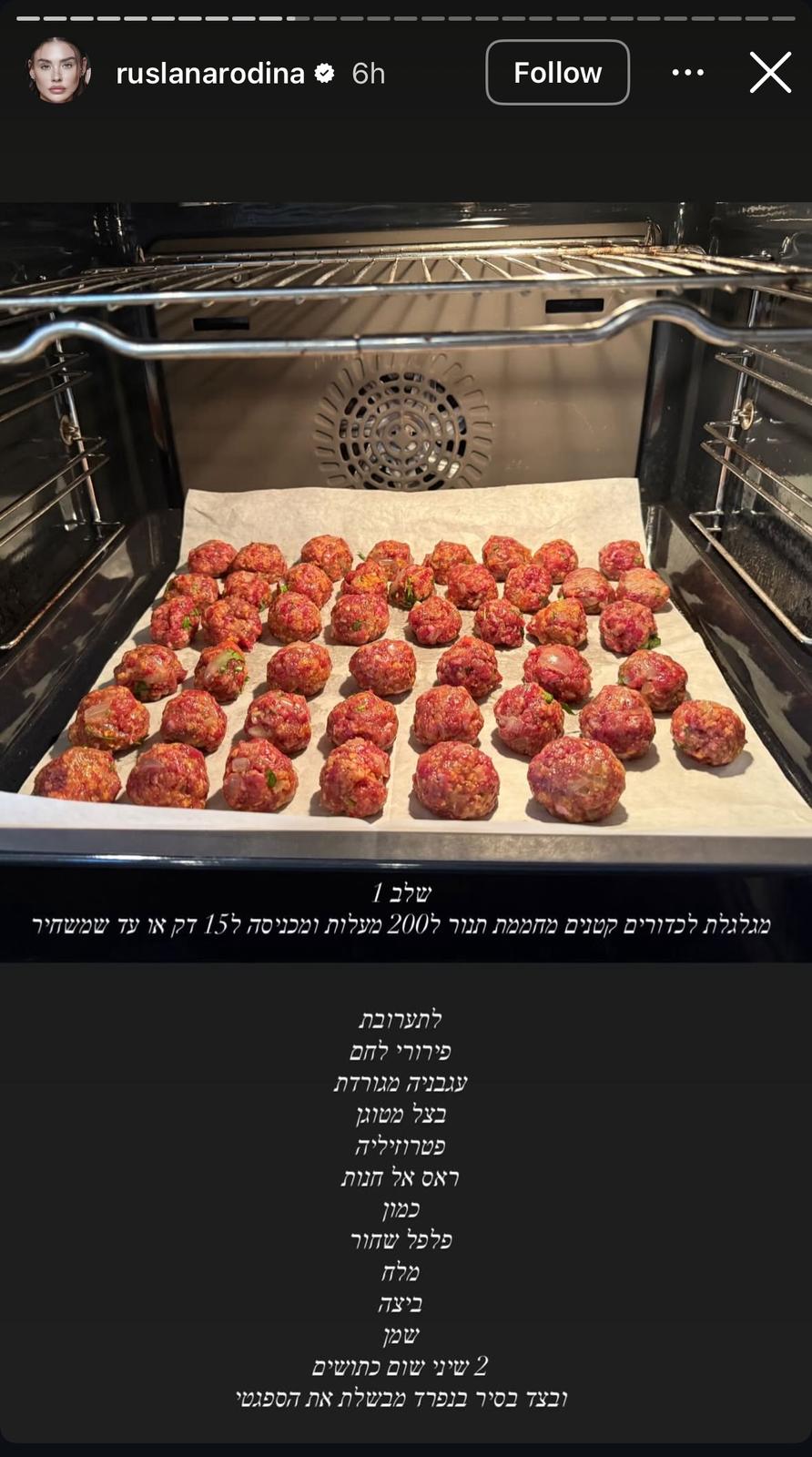 אוכל ביתי בגרסת רוסלנה רודינה והפעם למנה שהיא יותר אמריקאית-איטלקית: הדוגמנית ואשת העסקים שיתפה אמש את עוקביה במתכון שלה לפסטה עם קציצות בשר (שנוצר לדבריה בהשראת המשפיענית עדי עצמי).