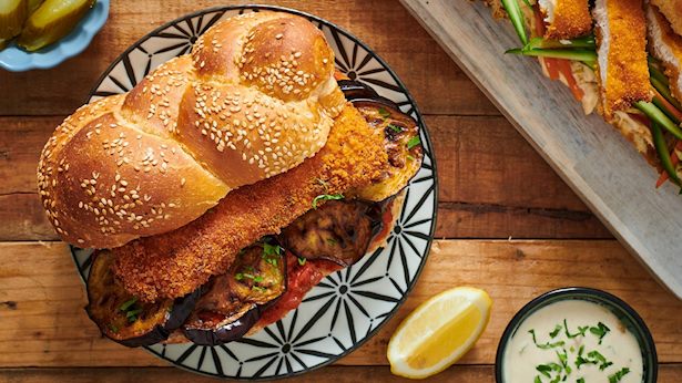 שניצל בלחמניה - (בסגנון יום שישי) עם מטבוחה וירקות: מבשלים עגבניות מאסטר שף עם פלפלים, שמן, פפריקה ושום, על אש קטנה שעה וחצי. מורחים בלחמניה, מוסיפים שניצל ואם רוצים גם פרוסות חציל מטוגנות.