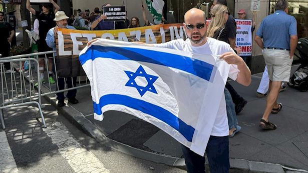 עם דגל ישראל מול ההסתה: מושיקו מוסקוביץ צועד בראש מצעד התמיכה בניו יורק לצד שורדי שבי ופצועים
