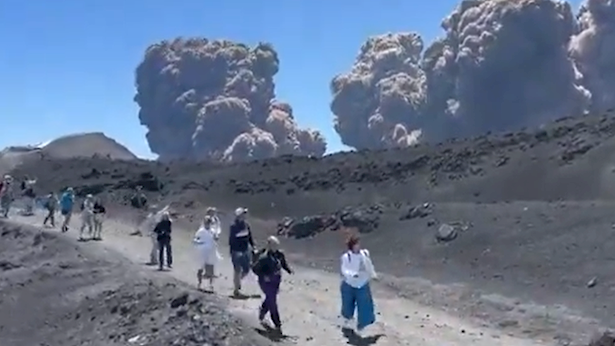 תיעוד דרמטי: הר געש התפרץ באיטליה, מטיילים נמלטו