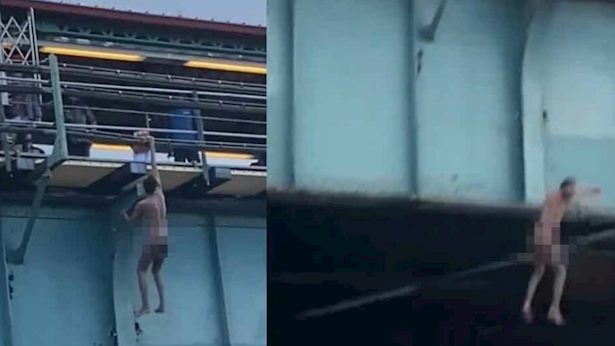 סרטון שפורסם בימים האחרונים מראה גבר עירום לחלוטין נאחז ביד אחת מתחת לרכבת המוגבהת בברונקס, ניו יורק. רבים מתאספים ולא עוזרים ולפתע הוא נופל. צפו