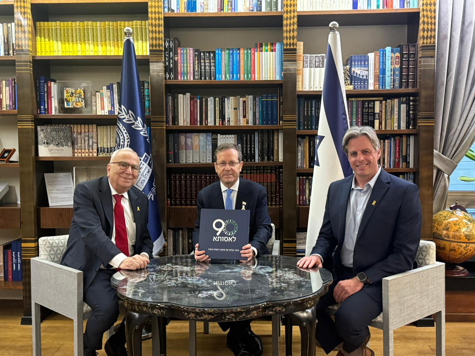 הנשיא, יצחק הרצוג ורעייתו קיבלו בהענקה אישית את ספר ה-90 של אסותא, הסוקר את התפתחותה לאורך השנים.