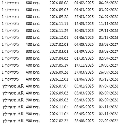 נוטרילון קוראת להחזרת מוצרים מהאצוות המצוינות מטה של מוצרי נוטרילון 1 800 גרם, נוטרילון 1 400 גרם, נוטרילון AR 900 גרם, נוטרילון AR 400 גרם, בעקבות הודעה מהיצרן באירופה