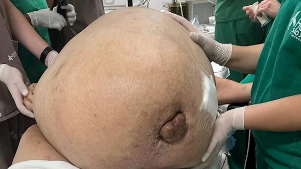 החולה האלמונית, ששקלה 150 קילו, התייצבה במרפאה לאחר שסבלה מקוצר נשימה, שנגרם לכאורה מהמסה המאסיבית. שם, הרופאים גילו שבחלק האמצעי שלה נמצא גידול במשקל של 100 קילו - כמו היפופוטם תינוק - המהווה כמעט שליש ממשקל גופה.