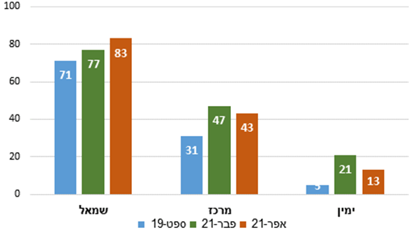 הקמת ממשלה עם המפלגות הערביות: 29% מהציבור היהודי תומכים בהקמת ממשלה עם המפלגות הערביות כולל מינוי שרים ערבים, לעומת 35% לפני חודשיים. בעמדת הציבור הערבי בנושא זה לא חל שינוי, וכיום רוב של כשלושה רבעים תומכים בכך. בעוד בשמאל התמיכה במהלך כזה עלתה (מ-77% בפברואר האחרון ל-83%), הרי שבימין חלה ירידה (מ-21% ל-13%) וכך גם במרכז (מ-47% ל-43%). התמקדות במצביעי המפלגות שישתתפו אולי ב"ממשלת האחדות", מגלה ירידה בתמיכה בהקמת ממשלה עם המפלגות הערביות: בכחול לבן (מ-58% תמיכה בפברואר ל-45.5% באפריל); בתקווה חדשה (מ-41% ל-31%); ובימינה (מ-21% ל-6%).