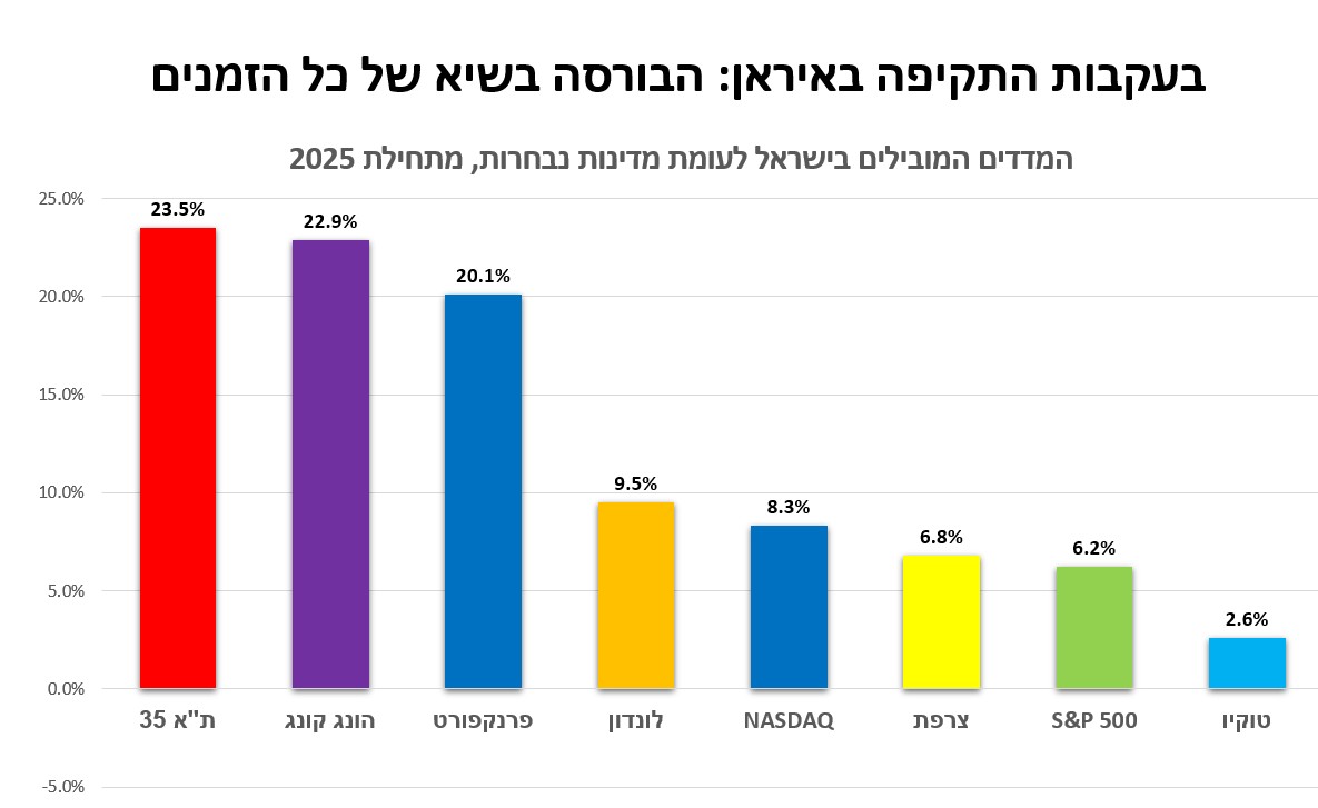 בבורסה מתגאים בצדק שמדד הדגל המקומי עקף את כל מתחריו במחצית הראשונה של השנה, אלא שמתחת לרדאר מסתתרת שם בשורה דרמטית עוד יותר: לראשונה התשואות בת"א, החל מ-2023, משתוות לאלה של ה-S&P 500 – והפער הגדול שנוצר ביניהן מאז ימי המהפכה המשפטית, נמחק לחלוטין. הבנקים וחברות הביטוח, שסבלו בעבר מתמחור חסר בצל המציאות הביטחונית, נהנים כרגע משווי הוגן ואולי אף מופרז. מדהים לגלות שכל זה קרה במדינה שמנהלת מלחמה, מגויסת בחלקה למילואים וסובלת מקיטוב פנימי עמוק סביב נושאי ליבה כמו השוויון בנטל. אלא שלצד ההשתאות, מתבקש לשאול עד מתי יוכל להימשך "הגל הירוק" הנוכחי, כל עוד המתחים המובנים בישראל (הביטחוני, הפוליטי והחברתי) רק הולכים ומתחדדים.