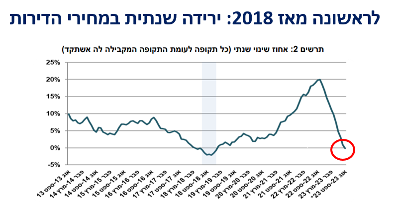 מבעד למסך העשן שמטילה המלחמה על כל אירוע שמחוץ לשדה הקרב, נבלעה בשבועות האחרונים כותרת שבכל תרחיש אחר יכלה לפתוח בקלות את מהדורות החדשות: בפעם הראשונה מאז שלהי עידן כחלון ב-2018, מחירי הדירות בספטמבר הגיעו למצב של ירידה שנתית – קרי, ב-12 החודשים האחרונים שוק הנדל"ן למגורים הוזל (אמנם בשיעור זניח של 0.2% בלבד), לאחר תקופה ארוכה של התייקרות בקצב מבהיל, אשר בשיאה נסקה מעל ל-20% בשנה.