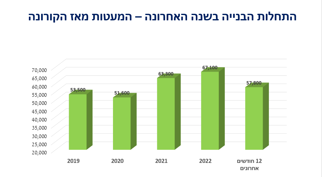 במספרים, בין קיץ 2022 ל-2023 הוחל בהקמתן של 57,800 יחידות בלבד – הקצב הנמוך ביותר מאז מגפת הקורונה. בנוסף, מיד עם פרוץ הקרבות, רשויות מקומיות רבות השביתו כליל אתרי בנייה על רקע חששות התושבים, באופן שיגרום לעוד עיכוב במועד המסירה ללקוחות.