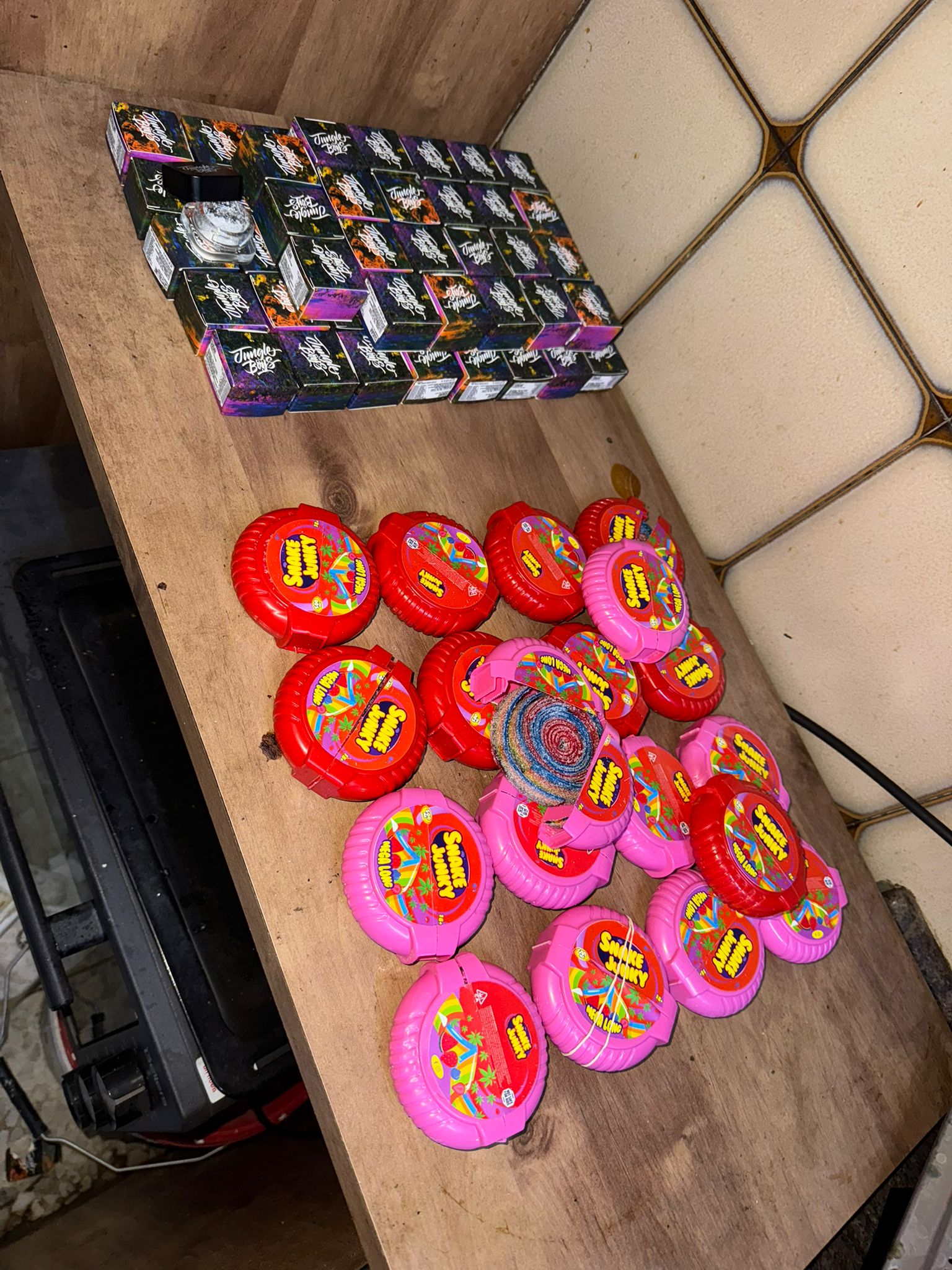 במקביל, במסגרת המאבק בנגע הסמים, בלשי משטרת תחנת בת ים פשטו על דירה בת"א וביצעו חיפוש, במהלכו איתרו מדפים מלאים במוצרים החשודים כסמים מסוגים שונים: סיגריות אלקטרוניות עם שמן קנאביס, חמאת קנאביס, סוכר קנאביס, טבליות שוקולד פטריות, מסטיקי קנאביס, עוגיות אוראו קנאביס. בנוסף, נתפסו פטריות הזיה, כ-6 קילוגרם חשיש, מעל 170 קילוגרם מריחואנה וכ20,000 שקל במזומן. שני חשודים תושבי ת"א ור"ג, בגילאי31 ו-52 נעצרו והועברו לחקירה במשטרת בת ים. במהלך היום החשודים יובאו בפני ביהמ"ש לדיון הארכת מעצר.