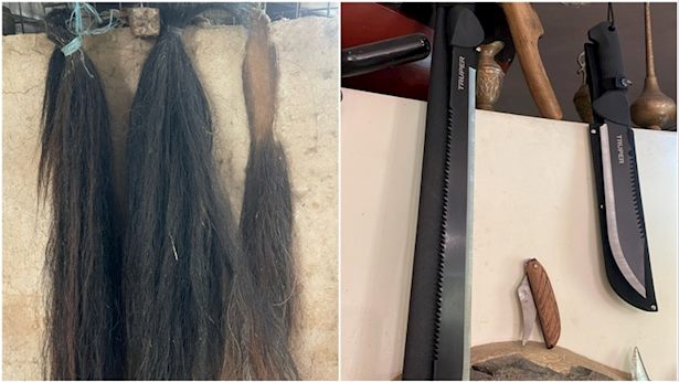 סכינים ששימשו להתעללות (צילום: דוברות המשטרה)