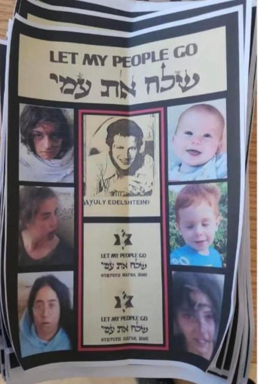 התובעות מציינות כי "הכרוזים לא היו לעומתיים ולא כללו מסרי מחאה, אלא מטרתם הייתה לעורר רגש". הן ציינו שעיצבו אותם בהשראת הכרזה המקורית מהמסע הבינלאומי לשחרורו של אדלשטיין עצמו מהגולאג הסובייטי, תחת הכיתוב "שלח את עמי". סביב תמונתו של אדלשטיין הציגו תמונות של חטופים וחטופות מה-7 באוקטובר.