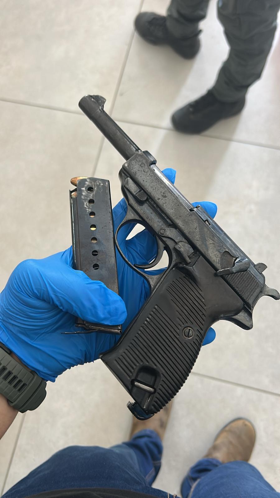 בעת החיפוש, נכחו בדירה 3 בגירים וקטין, ובמהלכו נתפס אקדח מסוג וולטר שהוחבא במכשיר מיקרוגל, מחסנית עם תחמושת, חומר החשוד כסם מסוג קריסטל, וכסף מזומן בסך 3 אלף שקל. כמו כן, אותרו גם מכשירי טלפון ניידים רבים.