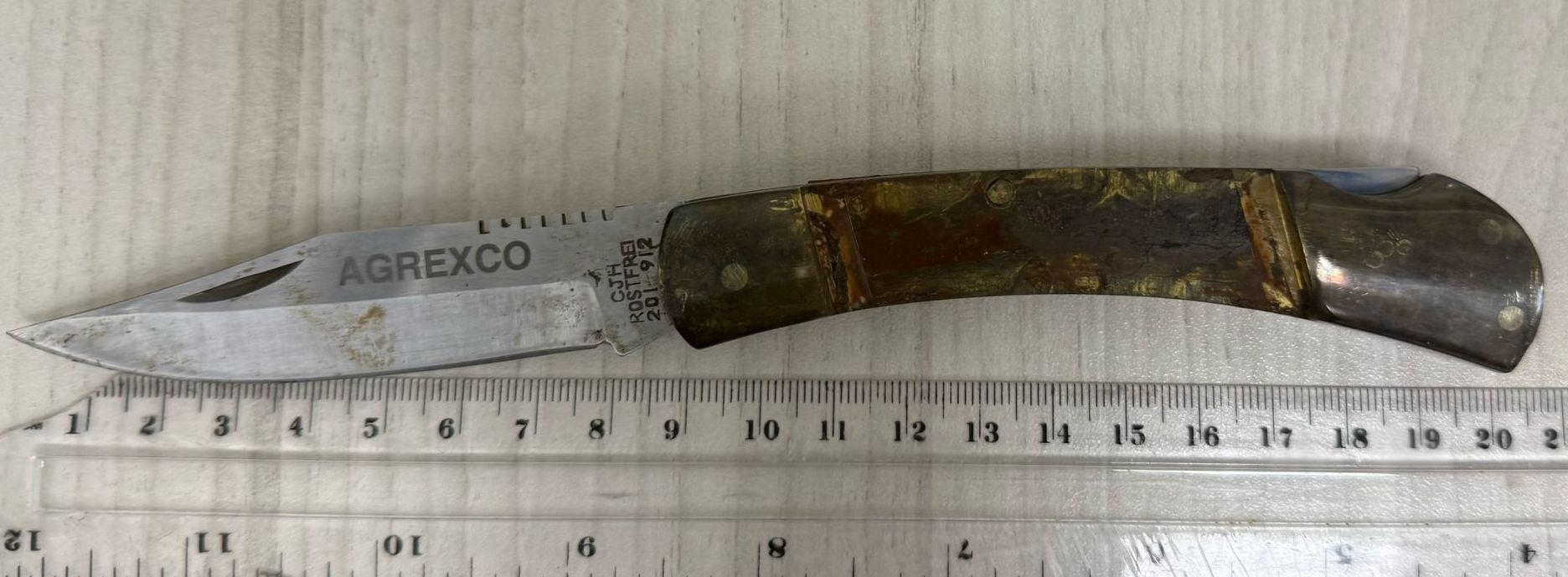 בתמונה: הסכין שנתפסה על ידי השוטרים. קרדיט: דוברות המשטרה