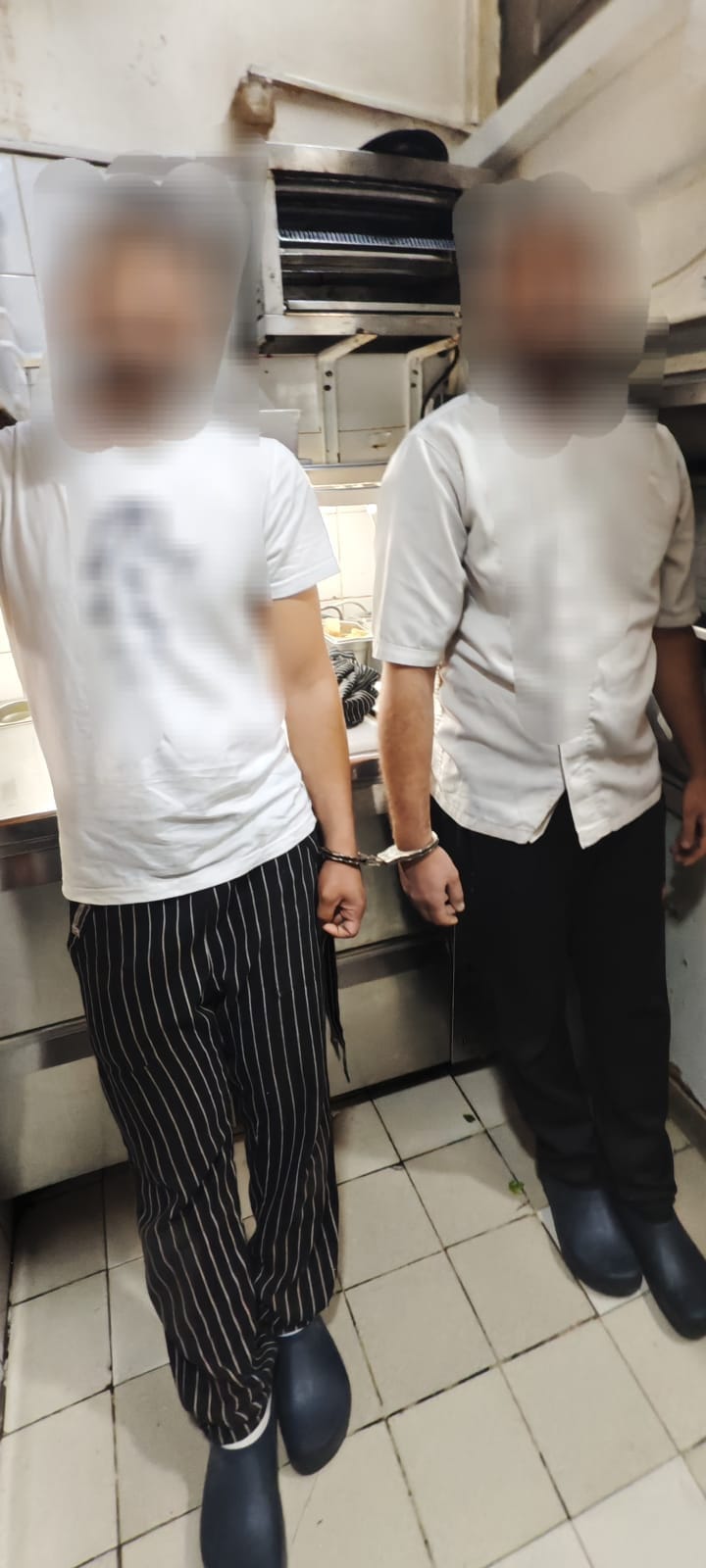 על פי הודעת המשטרה החשודים אותרו כשהם שוהים ועובדים במקום ללא אישורי שהייה כחוק. השניים נעצרו ונאזקו כפי שגם נראה בתיעוד שהופץ על ידי המשטרה, ובעלי העסק זומנו לחקירה באזהרה בתחנת המשטרה.