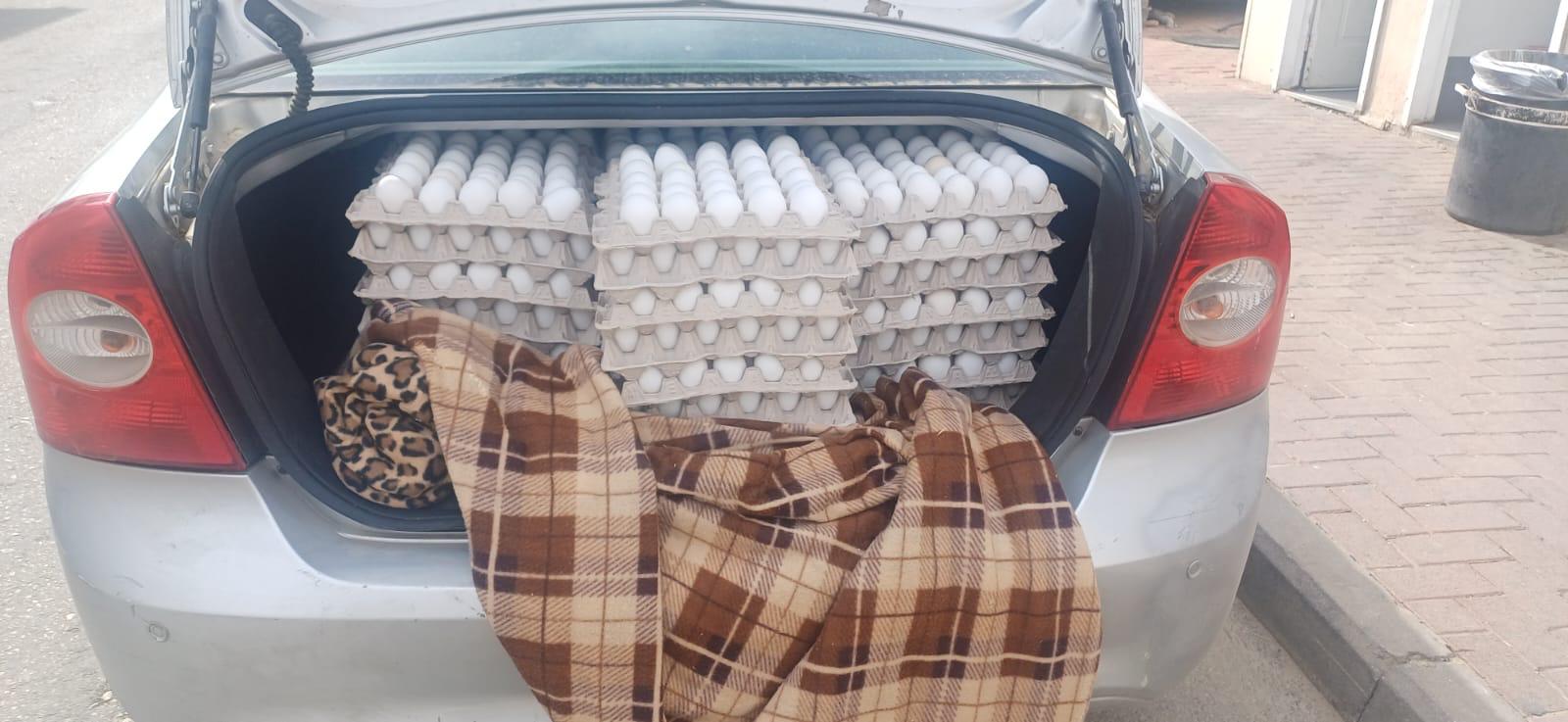 במחסום חיזמא, תפסו מפקחי המשרד חשוד שהעביר כ-1,500 ביצים לא מפוקחות וללא היתר יבוא, שהוברחו משטחי הרשות. על פי החשד, הביצים יועדו להפצה בשווקים ובמרכולים בירושלים ובסביבתה. מחקירה ראשונית עולה כי, החשוד ואשתו כבני 70, תושבי מזרח ירושלים, הסתירו את תבניות הביצים בתא המטען ובפנים הרכב באמצעות שמיכות. גם במעבר חשמונאים סמוך למודיעין עילית נתפסו כ-1,000 ביצים לא מפוקחות וללא היתר יבוא. בכלל המקרים, התוצרת שנתפסה הועברה להשמדה בצו רופא. הכסף שנתפס הועבר למשטרת ישראל להמשך טיפול, וכלל החשודים הועברו להמשך חקירה.