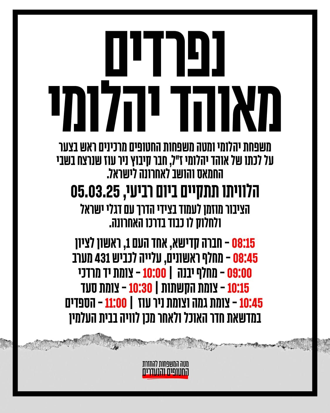 מודעת האבל של אוהד יהלומי ז"ל, קרדיט: מטה משפחות החטופים