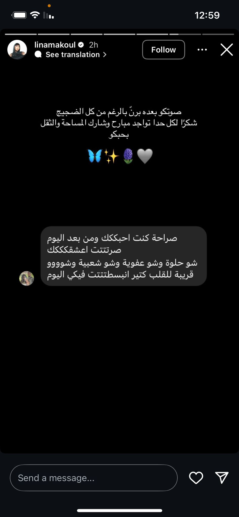הסטורי שהעלתה מח'ול (צילום אינסטגרם linamakoul@)