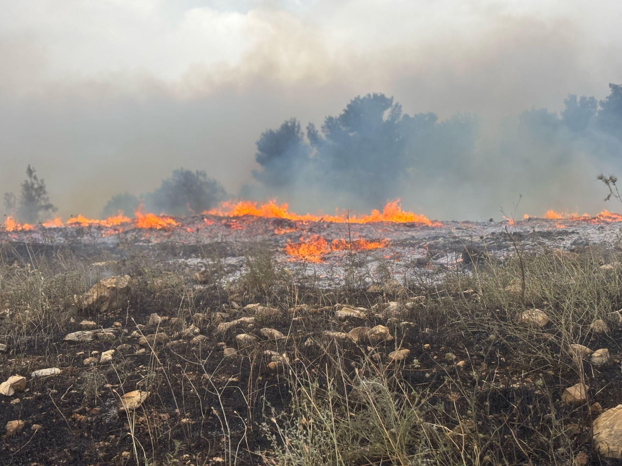 כביש 1 ליד בית שמש, שריפה אוחזת באזור.