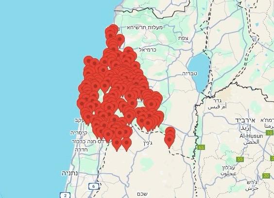 בתמונה: מפת האזעקות. קרדיט: צילום מסך "כומתה"