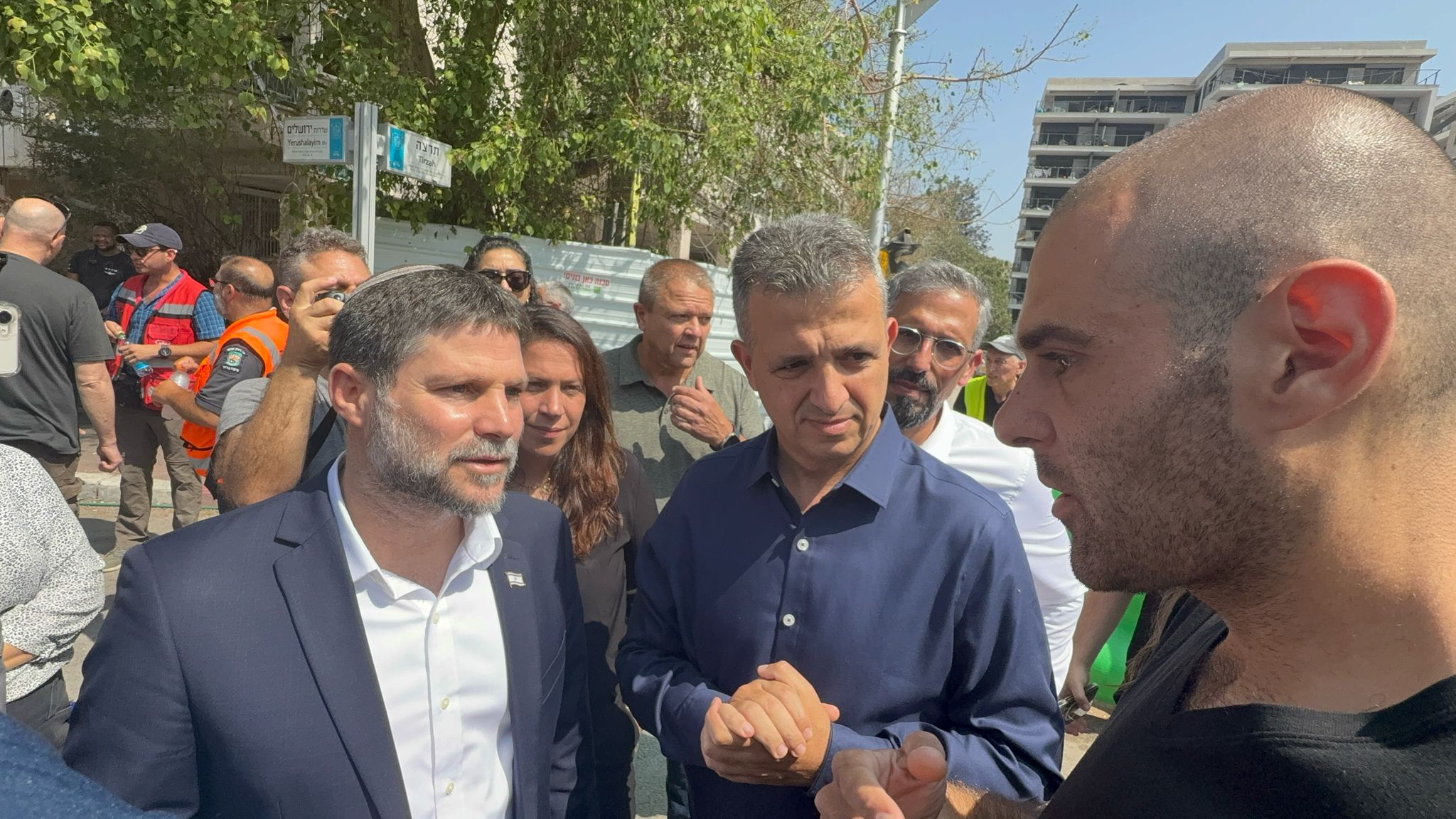 שר האוצר ביקר בזירת הנפילה ברמת גן, שם הבטיח לתושבים שביתם נפגע: "מדינת ישראל החזקה והגדולה מאחוריכם. היא תלווה אתכם במעטפת מלאה וללא בירוקרטיה"