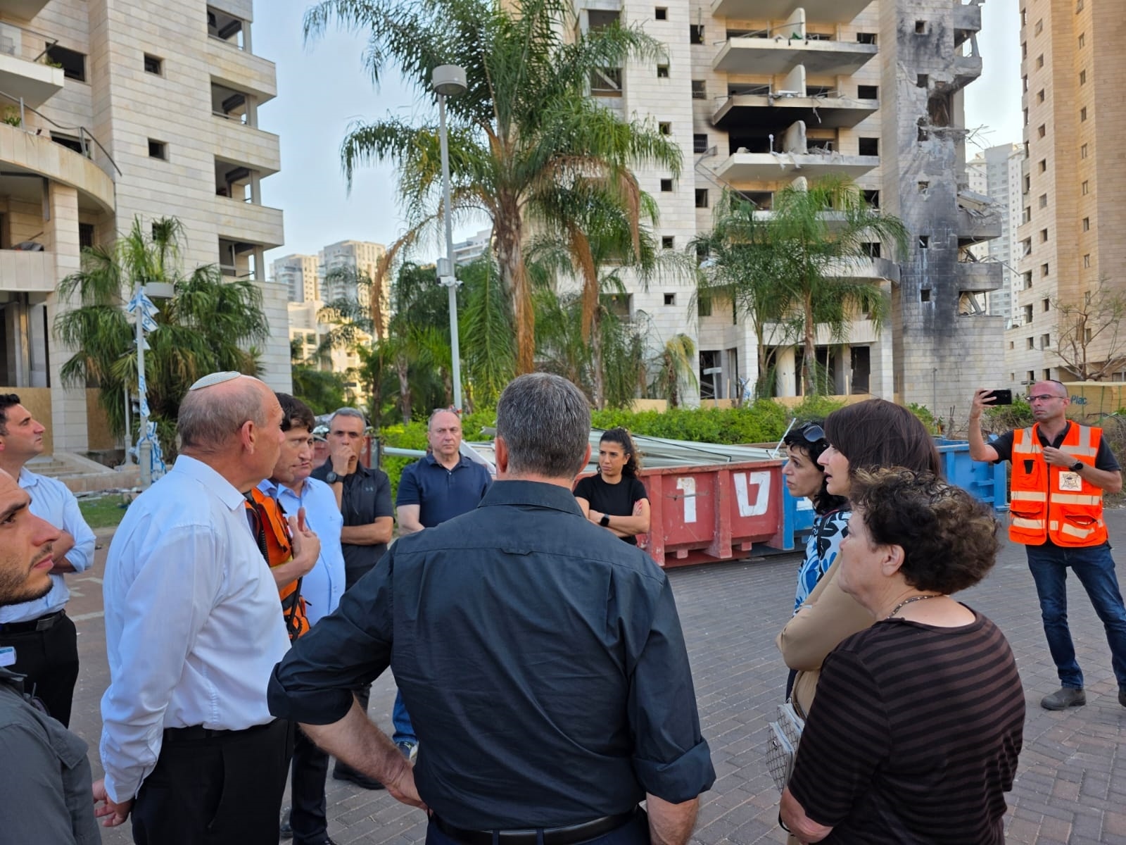 לסיור הצטרפו יו"ר מרכז השלטון המקומי וראש עיריית מודיעין חיים ביבס, ראש עיריית פתח תקווה רמי גרינברג, וראש עיריית הרצליה יריב פישר. במסגרת הביקור נפגש המבקר עם תושבים שהבתים שלהם נפגעו, ושמע מהם על האתגרים שחוו מאז הפינוי.