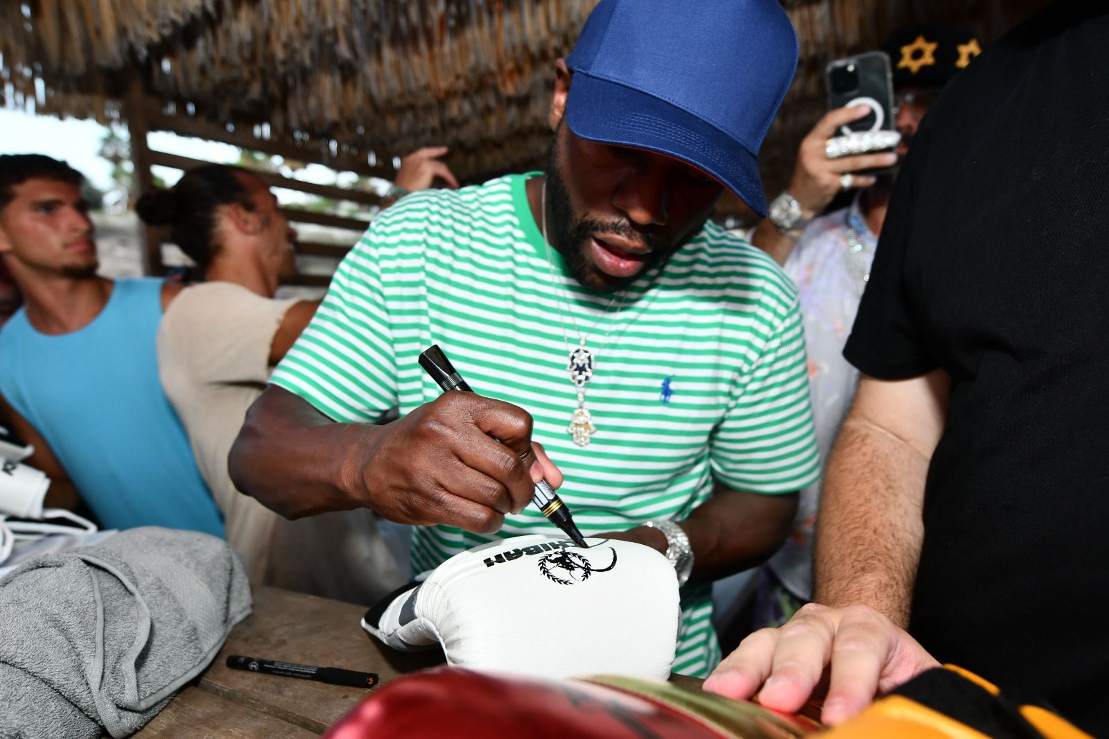 בתמונה: פלויד מייוות'ר חותם על כפפת איגרוף. קרדיט: יח"צ