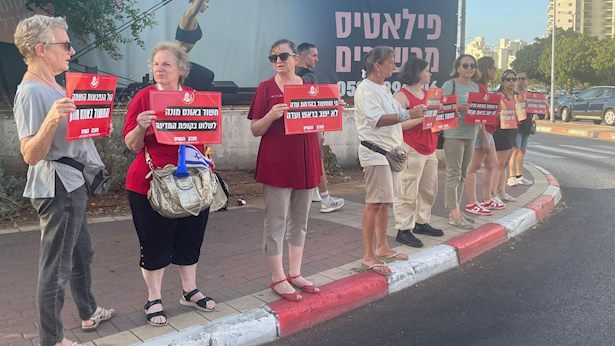 בסרטון: המחאה של "בונות אלטרנטיבה" מול ביתו של חנוך מילביצקי. קרדיט: תמיר פסטרנק