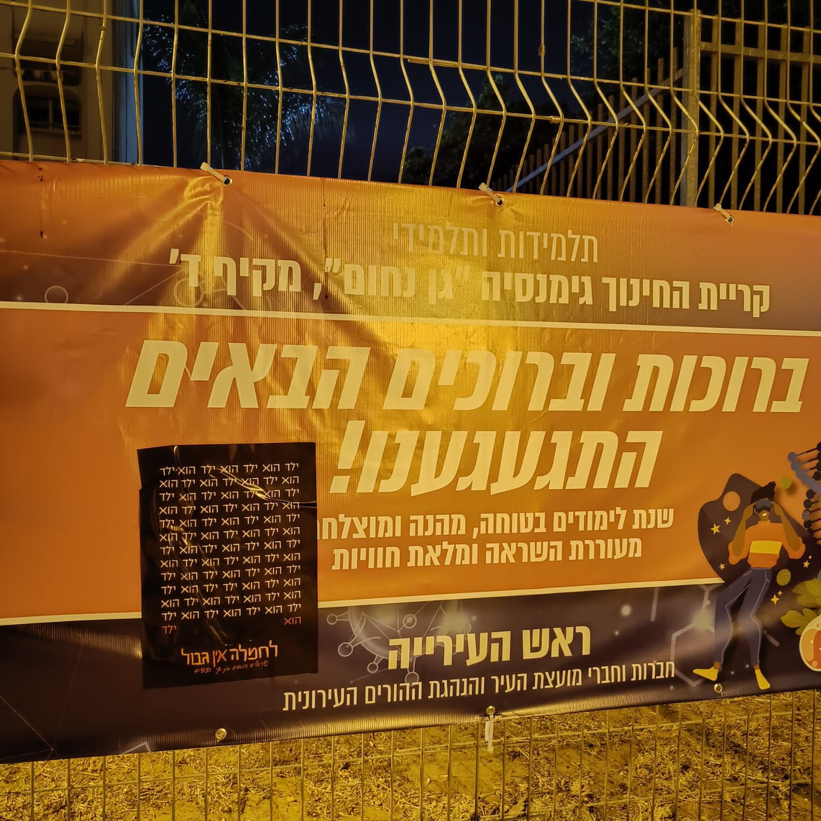 עם פתיחת שנת הלימודים הבוקר (שני) ביראל, גל ההתנגדות החינוכי למלחמה ממשיך לצבור תאוצה והבוקר הורים ממחאת ״כהניזם לא בבית ספרנו״ ושותפים נוספים, תלו בפתחי עשרות בתי ספר ברחבי הארץ, שלטים עם המסרים ״ילד הוא ילד״ ו״לעצור את המלחמה״.