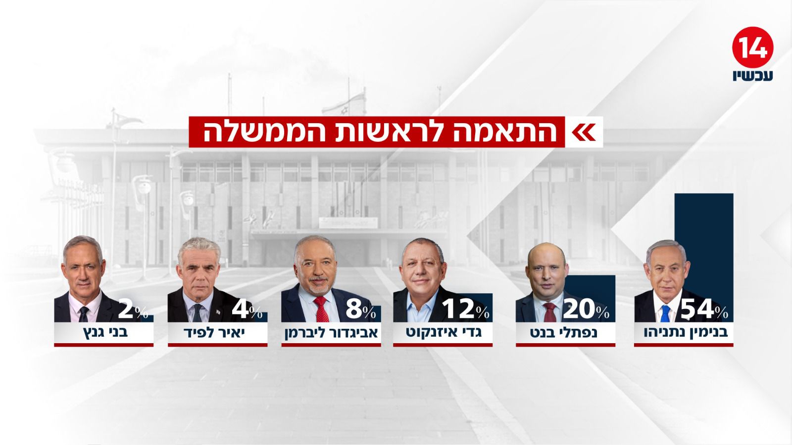 אחריו, ניצב הרמטכ"ל לשעבר, גדי איזנקוט, עם 12% התאמה לתפקיד. אביגדור ליברמן נמצא עם 8% התאמה לתפקיד. יאיר לפיד ובני גנץ נמצאו עם 4% ו-2% בהתאמה לתפקיד ראש הממשלה של מדינת ישראל.