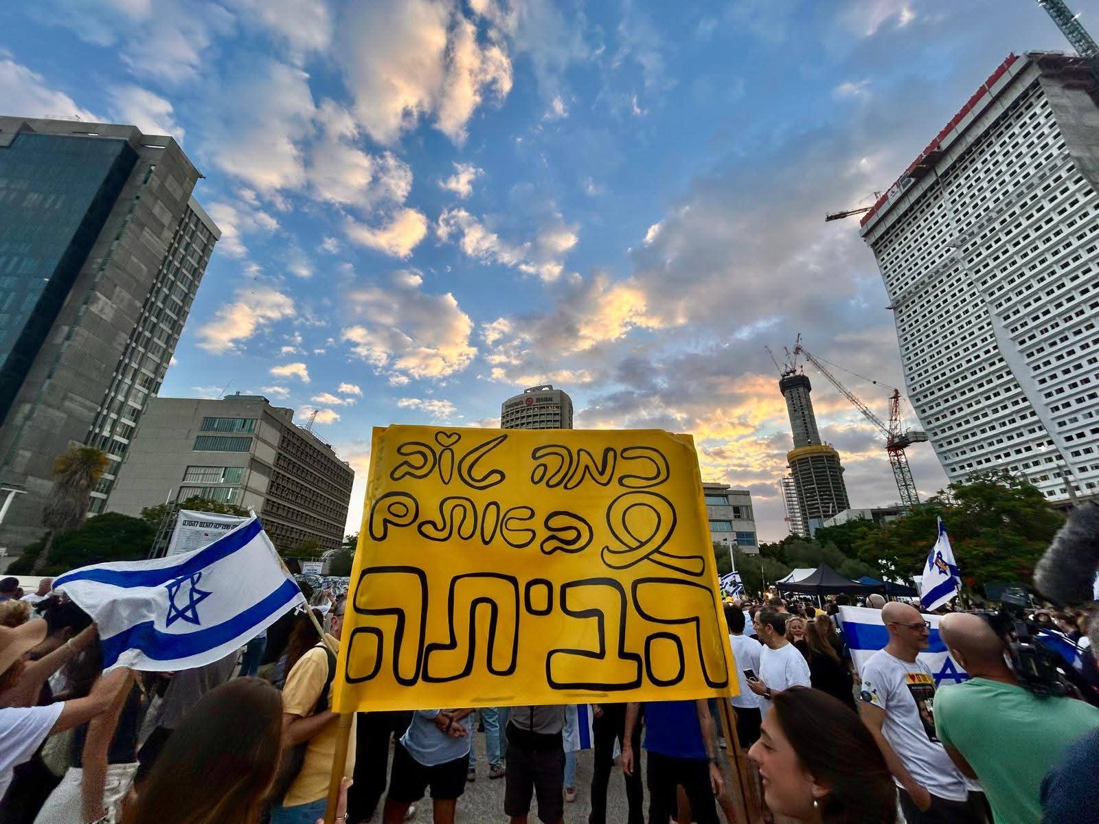 המונים בכיכר החטופים הבוקר (צילום: אלון קורנגרין)