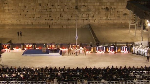 טקס הזיכרון הממלכתי החל בדקת דומיה ברחבת הכותל המערבי. הטקס לזכר 25,648 הנופלים וחללי פעולות האיבה התקיים במעמד נשיא המדינה יצחק הרצוג, שר הביטחון ישראל כ"ץ והרמטכ"ל, רב-אלוף אייל זמיר