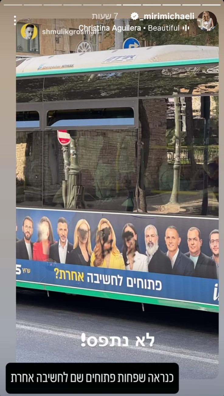 בשלט, שהוצג על גבי אוטובוס ציבורי, התנוססו תמונותיהם של מגישי ופרשני הערוץ, ביניהם צבי יחזקאלי, שרון גל וניב גלבוע, לצד העיתונאיות המובילות בערוץ – שפרצופיהן הושחתו באופן מופגן ומכוער - ככל הנראה ע"י מי שמנסה להדיר נשים מהמרחב הציבורי.