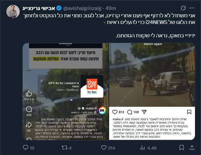 אבישי גרינצייג שפרסם את תאונת פגע וברח של השרה לשעבר לימור לבנת, מאשים את אתר החדשות מבית שידורי קשת על העתקה - אלו הטענות שלו