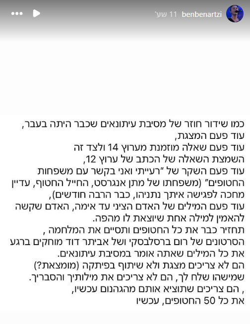 קרדיט: צילום מסך מחשבון האינסטגרם benbenartzi@