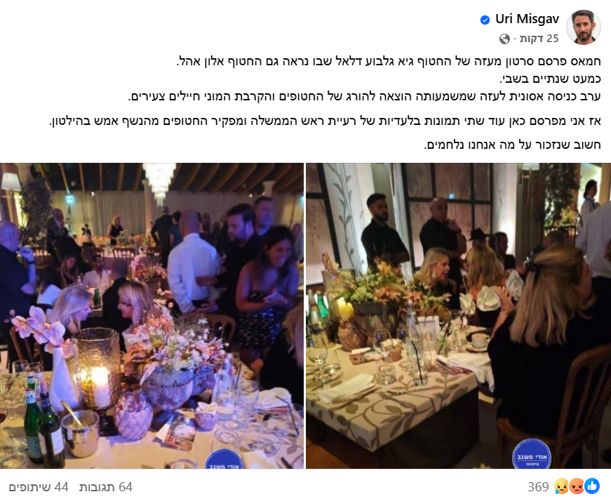(צילום מתוך עמוד הפייסבוק של אורי משגב, Uri Misgav@)