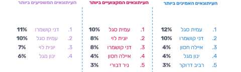 טבלה מתוך סקר התקשורת של "יפעת מחקרי מדיה"