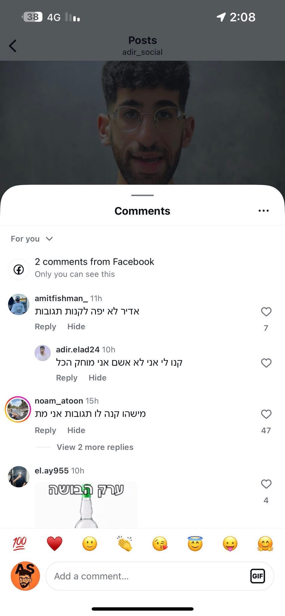 בתגובות לפוסט, אלעד חשף כי הוא מכיר את אותו האדם שמנסה להזיק לו. "הבן אדם התגאה בזה וחשב שזה עוזר לי, והוא לא מבין שזה עושה בדיוק ההפך", כתב אלעד.
