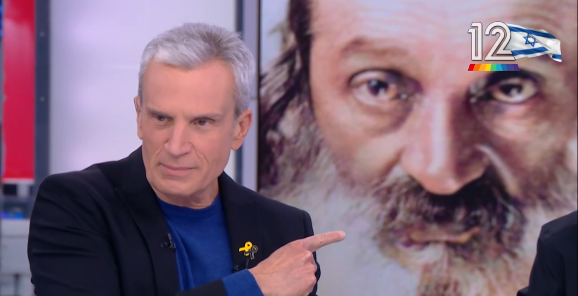 גלעד מצביע על תמונת סבו החרדי (צילומסך ערוץ 12)