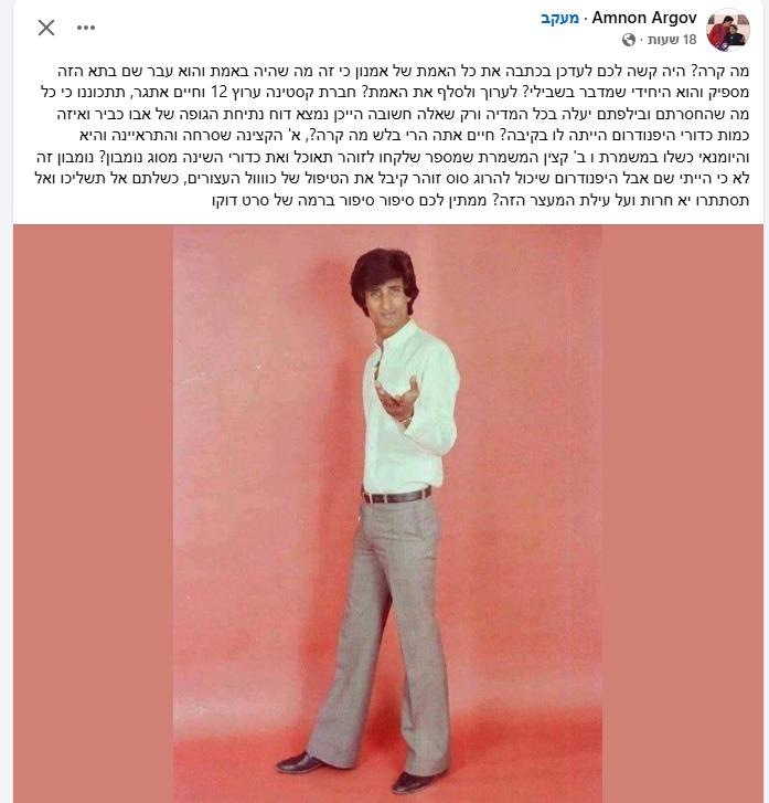 הפוסט של אמנון ארגוב (צילום: פייסבוק אמנון ארגוב)