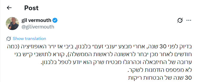 פרשן "ספורט 1" ומגיש פודקאסט "קיקטוק" מבית All in התייחס בחשבון ה-X שלו לראיון של נתניהו ותקף: "בדיוק לפני 30 שנה, אחרי מבצע ״ענבי זעם״ בלבנון, ביבי אז יו״ר האופוזיציה (כמה חודשים לאחר מכן יבחר לראשונה לראשות הממשלה), קורא לתושבי ק״ש בני ערובה של החיזבאלה וכהרגלו מבטיח שרק הוא יודע לטפל בלבנון". עוד הוסיף: "לא מפספס הזדמנות לשקר. 30 שנה של הבטחות ריקות".