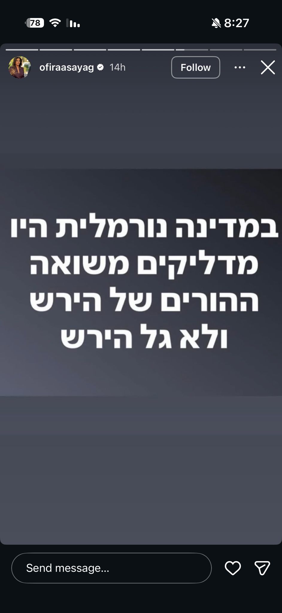 אופירה אסייג: "במדינה נורמלית היו מדליקים משואה ההורים של הירש"