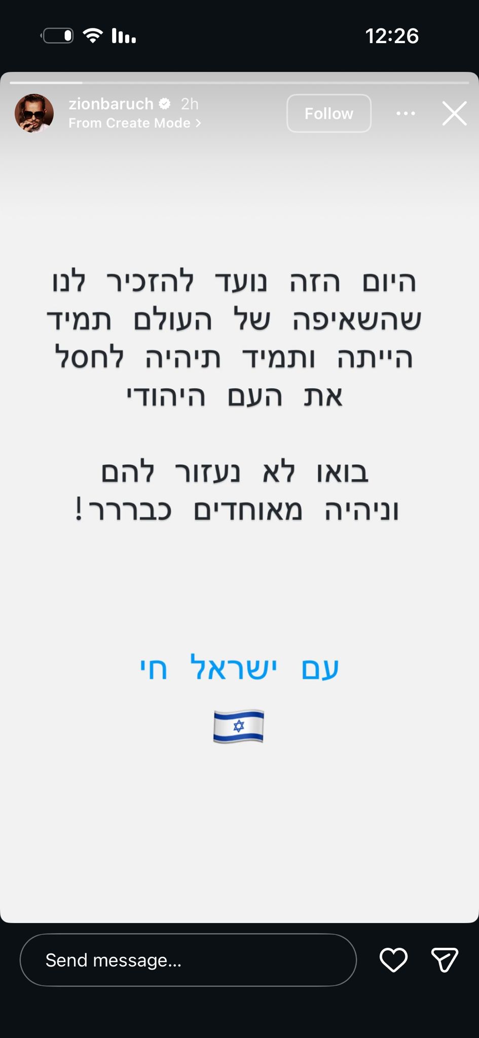 צילום מסך מתוך חשבון האינסטגרם של ציון ברוך, zionbaruch@