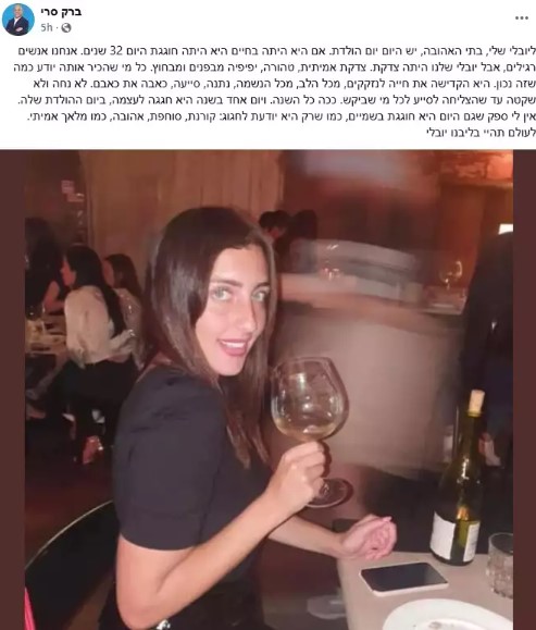 היום (שלישי) יובל ז"ל אמורה הייתה לחגוג את יום הולדתה ה-32, אותו ציין ברק סרי בלעדיה. בפוסט קורע לב שהעלה לחשבון הפייסבוק שלו, סרי העלה תמונה של בתו שהלכה לעולמה וכתב תחילה: ליובלי שלי, בתי האהובה, יש היום יום הולדת. אם היא היתה בחיים היא היתה חוגגת היום 32 שנים. אנחנו אנשים רגילים, אבל יובלי שלנו היתה צדקת".