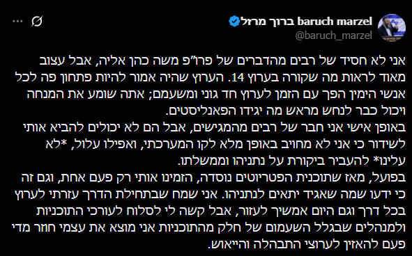 מנהיג תנועת כ"ך, ברוך מרזל לא נשאר אדיש לעזיבתו של פרופסור משה כהן-אליה את "הפטריוטים" ותקף את ראשי ערוץ 14