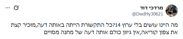 4.היית גר במחנה עבודהבצפון קוריאה 04/2026/22הגב לתגובה זו0 1ומתגעגע לתרשורת הישראליתסגור
